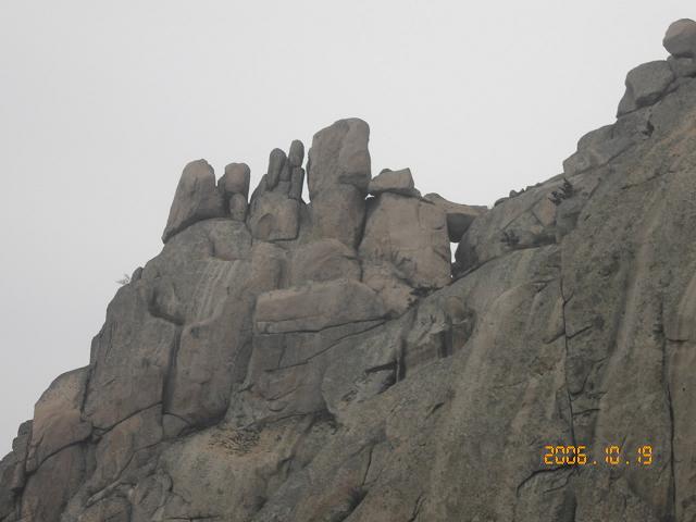 ラオ山は秋吉台に似ている?と思ったが違う。花崗岩なのだ。土木建築用として用いた残骸のような石を丁寧に積み上げ、田んぼの棚田の様に茶をつくっている<写真>ラオ山は岩と松とミネラルウォーターの水、ビールの原材料の水そしてラオ山茶が有名だが観光ルートとしてもバスで一日たっぷり楽しめる。チンタオのバスは空調車は2元、普通車は1元。同様に観光バスも空調バスは少し高い往復35元、観光で門を入るのに50元かかる。設備管理費である。ラオ山の観光客用のトイレはマイカルやジャスコよりずーっときれい。4つ星のトイレが有った。石英も使っていたトイレが・なんとただ!だった。ラオ山以外では考えられない添乗員が案内引率してくれる。保険費と書いてあるが10元。〆て95元。バスから降りると8割引というチケットをくれた真珠製品の土産屋、や海沿いなので海産物が豊富な土産屋。はけっして安くない。観光バスとタイアップあんどトイレタイム。ケーブルは40元自前です。洞窟の強度のアスレチックが待っているのですから、ここは歩くなんて言わず、素直に乗ることよ。てっぺんから石段を降りる時のうららの脚はぶるぶるに震えていた。60歳を過ぎて登る処ではない。降りてから見た立て札に、心臓病、高血圧、精神異常<高所恐怖症)などの方はダメと書いてあった。 お・そ・い・。!!