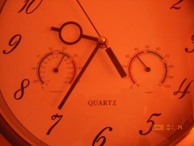 時計まさに・・ピンきりであるが・・・便利なのは・・・温度と湿度が付いている 時計がいいわね~ (500円位) ただ今室温は 23度 湿度は38パーセント・・・ちょっとヤバイです!この日・・加湿器を設置した記念の日? ですわ カーテンが 淡いオレンジなので・・・時計もオレンジ色に映えています寝室の 湿度が見える位置に 掛けています・・ 乾燥になる前に 二人で・・・壁の角の黒カビのお掃除をしました。 漆喰なので触ればボロボロ落ちますので・・ほうきで掃き落とし・・落ちます。 で・・剥がした後・・漂白剤で拭きました。 今は カビが無く すっきりきれいに成っています 我が家の時計下湿度は 風邪引きと関係が有りますよ・・乾燥・危険? 適切・OK 多湿・能率ダウンですわ 中国で 時計を買うときは 名の通った レシートを持って行けば交換してくれるところ(ジャスコ・・カリフールなど) で買うべし・・ 普通 電池が付いていないので 動かない事も有ります・・有りましたよ 増して・・露店は安いけど・・・保証はない・・・多分不良品かもと思うべし・・ 最後に 中国では 記念品に時計を使いません・・・発音が終わり(死)と同じだから・・・です