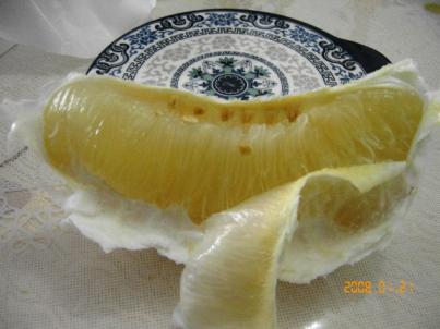 味は 安政柑・・パール柑・・のようで・・酸っぱくない・・オレンジのように甘くもないみずみずしく・・食物繊維たっぷり 一個(1房)で足りる・・でっしょ 実物大です・・・いやちょっと小さいですワ 写真の方が・・20センチは有りますのよ・・だから お腹がいっぱいに成ってしまいます 種が・・小さく 袋の入り口に ぎょうぎ良く 並んでいる大きさは・・・下↓とに角 大きいんです・・・中が 完熟して・・袋の口が裂けていますよ・・ 厚い皮と白いクッションで覆われていますので・・・重いのです・・ 多分5・6キロ 前後・・・・ネダンも・・・100~150円前後ネーブルと比較・・・名前を ユウズといいます 柚子・・・ しかし・・ですねえ~ こんなのが上から 落ちてきたら命取り ですよ!もぎ取りには・・・ヘルメットかぶって 採るん ですかねえ・・命がけで・・