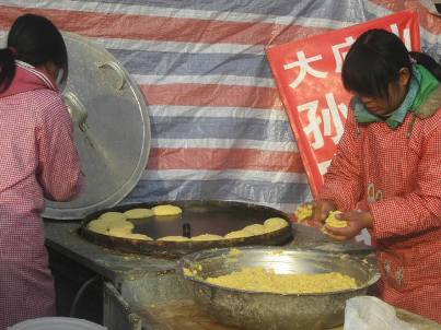 朝市の一角で・・・ 農家の娘たちと 弟かな?・・・昔ながらの 碾き臼で 白ゴマを練って 瓶詰めで売っている 下↓は・・・練ったトウモロコシの粉を 手のひらサイズに整え 回る釜の中に 貼り付けると プロパンガスの火で・・・ 焼けて黄色いパンになる ボソっとしていて 呑み込みにくい 焼きパンだ 50年前ほどの 中国全国に飢餓時代が有ったそうで・・・その時飢えをしのいだというパンです いわば 非常食用パンで・・・・・懐かしくもある味だそうでして試食しましたが 唾液の豊富な御仁でないと 喉に詰まりますぅ~ 8時半には 解体する露店市場で・・・して商売一式の道具を 娘たちでどう運ぶのか ?想像するだけで も 感心していましたが・・・ ここの露店後の駐車場を 昼間通って見たら・・・なんと 奥に しっかりと 臼の様な台にブルーのシートを被せて縛って 置いてありましたよたくましいよね~娘たち !! 誰も 自分の道具を 残しては 帰りませんのよ 朝市は 200~300位? もしかしてそれ以上の出店が 並ぶのですがでも・・・ものの見事に荷物からげて 9時には去っていくので ・・・ 路上は空っぽです その中に ブルーの荷物がぽつんと 残っています 重くて・・・ これ盗る人も居ませんわね
