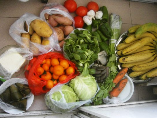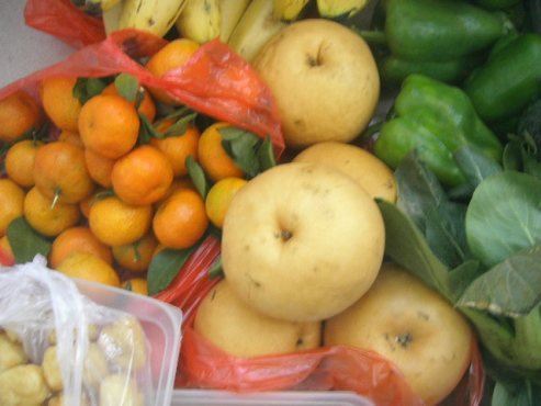 野菜と果物そして魚は・・・朝市で買うことにしている1っ週間のまとめ買いだ ココは↓ 街の角 どちらにも 市場の延長にある市場は ・・・通りに面した学校の裏だから・・・通りは バスや車が通るのよちょっと危ない所だ が・・・車の方が 遠慮して通ってくれる 売り手は 殆ど バンで来て頭を通りに向けて 直ぐ出られるようにしているわ今日の買い物・・・2000円位買っちゃったかも・・・今日の魚は またもや カレイ ですう~ 水槽から出したばかりで 活きていたし・・・大きくて 大皿にも はみ出るカレイ 先回小ぶりを 4匹かって 2匹を冷蔵庫の中で 腐らせてしまったので今日は・・・ 早めに って 昼には 食べたのよ だから今は・・・うららの 腹の中です 長い旅に出ました~ 酒 生姜汁を振りかけ 小麦粉と片栗粉でまぶし から揚げにした平たい中華鍋からも はみだしていた 気にしない ! だって 新鮮だから 少しくらい火が通っていなくったって 前後ろずらしておおざっぱに 揚げたのよ それでも・・・ 火は確かに中まで 届いていたよ ジャーっと豪快にネ!! ポン酢で 食べた 美味しかっ~た ~ あ ・ ・ ・・← これ余韻 エビは 頭とか・・・ち切れそうなのばかり 山にした お徳用を買ったイカは ほたるいか・・・ 少し買いなので 兄ちゃん呆れていた ゴメンヨ! どちらも お好み焼き用に処理して 冷凍庫に入れましたよ 貝柱・・・これの干したのはとても 高いですが 生は・・・安い 鍋汁ものの 味出しに使おうと思って 小分けにして 冷凍にした あとは・・・野菜と 果物 ↑は 中国の揚げです ・・サイコロみたいよね コレをハサミで切り 紙で油を取り 冷凍して 味噌汁や 煮物の味付けに使います 豆腐も出来たてで 湯気が出ていた・・・・ 一気に 明日(月曜日に) 食べ切ちゃおう! 先回は今日の3倍大を切ってもらって買ったが・・・ 半分は腐らせてしまって捨てたのよ 勿体無い事をすると思うが 腹痛を起こしたら 反って病院代が高く付くので 食材は心配なら 捨てる事にしている だって な~んたって 安いから ねー!! 中国の豆腐や乳製品は 日持ちがしないのよ 冷蔵庫の中でもヨ すぐ腐る 日本の3分の1日位で・・ 腐り始めるから・・要注意よ~ 野菜スープを シチュウ鍋いっぱいに 作った 多分3日分は有る 先回の残った野菜は 温野菜もしくは 生のまま塩もみし・・・ 切った昆布と鰹節 ポン酢とリンゴ酢の 野菜の酢漬けで タッパーに保存食 日曜日の午前中は ・・・買い物とその処理に のんびりとG-さまとお喋りしながら ・・片付けています