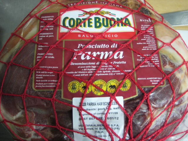 今月から生ハムをイタリアのプロシュートにしました。フランスのビゴールも非常においしかったですがかなりお値段が高めだったのでしばらくお休みです・・・このハムは世界3大生ハム (イタリアのプロシュート スペインのハモン・イベリコ中国の金華ハム 個人的には金華ハムよりフランスのジャンボンが三大だと思ってますが)のなかで1番日本人に合うわかりやすい味ではないかと思います。今までより安くたくさん召し上がっていただけます。よろしくどうぞ。