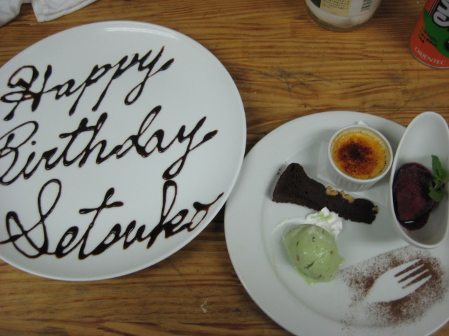 11日金曜日のディナーは貸切の営業になります。お誕生日の方にサービスで名前入りのプレートをお出しできます。写真はマダムが書いたものでしばらくは僕が書くので若干異なります。来週はボジョレヌーボー解禁ですね。解禁日17日から売切れるまではボジョレヌーボーに合わせた前菜をお出しします。