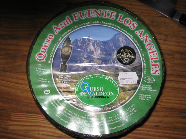 ケソ・デ・ヴァルデオン。ブールーチーズです。ケソがチーズの意味です。スパニッシュをやっていた頃から愛用しています。有名なところでロックフォール、ゴルゴンゾーラなどと比べると以前はかなり安価で味、香り、コクも負けてないと思い使っていた。今ではほぼ変わらない価格になってしまった(ユーロ高のときに値上がってそのまま値が落ちない。)毎回熟成のあまり進んでいない状態で仕入れ、カットして少しずつ熟成させ(ワインセラーと同じか少し高いくらいの温度帯で)そのまままたはパスタ、リゾットでお出しします。近く断面の写真を載せます。