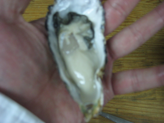 以前にもえぞ鹿を譲って頂いた友人のお父さんにイノシシをわけて貰いました。日曜日に捕った物でその日にもらい今日早速お出しした。イノシシを捕るお父さんも気になっていた様でグリエにして食べてもらった。かなり喜んでもらい明日も狩猟に行くから捕れたら持ってきてくれるようです。捕れたら・・・今日の朝築地から電話があり姫路の牡蠣が入ったからどうだ?ということで1個から買えるというので3つ買って味見してみました。小ぶりですが肉厚で味も濃いうえお安く提供できそうなので週末には生牡蠣をする予定です。