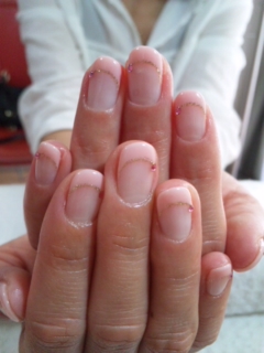 今日はMさん先日のランチは共に発散しましたね~本当に本当に楽しかったですね~また機会あれば是非誘って下さいちょうど前回のジェルが少し浮き始めた頃なので、ネイルチェンジのグットタイミングハンドジェルシンプルゴージャスMさんらしいデザインに仕上がりました今日も・・Mさん見送り後・・ん??あれは??Mさんの携帯~~~~~~~~~~~~~!!!!!!!!!!!!連絡取りようがありませんが、これは2回目おそらくご主人に電話一本入れるだろうな~とは想定していたので遠く離れる前に、戻って来てもらえました次回から私も最善の注意を払います~次回も楽しみにしておりますあ~ご主人のビフォアーが目に残ってます(笑)そして、Hさん~いつもお菓子を頂いてすみません。。ペロリと頂きました~☆前回のデザインが超お気に入りリピート??と思ったのですが、せっかくなのでカラーはそのままでデザインを変えましたハンドジェル本当にパープルが似合うHさんです今日も色々話が尽きず・・が、Hさんの喉がやたら気になりました。。ちゃんと病院行って下さいね~ちゃんとした処置をして下さいね~で、今日は勝ち??また次回も楽しみにしておりますそして最後はHちゃんはるばる神戸から~本当は交野から~なんだけどね~先日神戸にお嫁に行っちゃったHちゃんですいよいよ後日お式あ~~~~本当にいよいよ。。まだまだ大学生だったHちゃんが、お嫁ちゃんかぁ~しみじみ。。今日は念願のブライダルネイル~今日は式前最後の実家お泊り??家族団らんをしっかり楽しんでね~もちろんお迎えはTママお祝いを私も一緒に混ぜてもらった感じ手作りのお赤飯美味しかったぁ~お袋の味~そんなTママの手のお手入れはまた明日しっかり楽しみにお待ちしておりますHちゃん本当に本当にご結婚おめでとうTママのように、たくさんたくさん愛情のこもった美味しい料理を旦那様に作ってあげてね式のお写真を楽しみにしております今日はお赤飯を食べてなんだか私もお祝い気分めでたいめでたい!!!◆HPに記載の電話・メールよりご予約下さい。◆こちらからどうぞ >>☆予約状況☆月・(火)・木・金午前10時~午後13時~(内容により変更あり)(夕方17時~内容によりご案内。ご相談下さい)土・日午前10時~午後14時~(夕方17時~場合によりご案内。ご相談下さい)まつげカール、ハンドケアは時間外にご案内できる場合もありますのでご相談下さい。△:ご相談下さい。午前・午後◆10月◆7日△休8日×休9日△×10日××11日休△12日休業13日××14日×△15日××16日××17日××18日休業19日休業20日×○21日○○22日×△23日○○24日○○25日休△26日休業27日○○28日○○29日○○30日○○31日×○