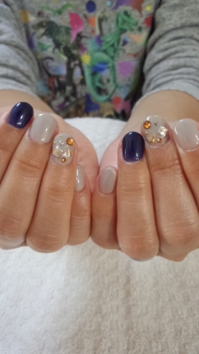 今日はGさんデザインを決めて来てくれましたぁ~お仕事中にハンドジェル決めてきたデザインのカラーだけ変えました良い感じいつもGさんとは色んな情報交換をします楽しいですね~また、次回その後を聞かせて下さいね今年のネイルも残すところあと2回楽しみましょうね~~~~今日はインテックス大阪に行ってきましたぁ~久しぶりにビューティワールドを覗いてきましたよビューティワールドは、エステ、ヘア、ネイル等の美容業者さんが集まるイベント東京で開催されるビューティワールドには何度か行ってましたが、大阪は初めて行った私。ちょっぴり規模が小さくて残念でしたが、ネイルはもちろん、個人的にエステ美容ブースも楽しんで来ましたとあるブースで、おぐねーが居ましたとても気さくで、良い人でしたそして、エステサロンをしている大学時代の友人と合流して、ランチをしてきました~なかなかお互い忙しくしてるから、良い機会になったね~楽しかったぁ~☆有難う今日は良い刺激と共に、とてもとてもリフレッシュになりました☆☆☆ ハンドケアキャンペーン ☆☆☆10月中通常ハンドケア 2000円 1200円☆予約状況☆月・火・水・木・金午前9時半~土・日午前9時~△:一度ご相談下さい。ご予約のご相談をお受けします。皆様のご都合に出来るだけ合わせることが出来るように対応しますので、×印でも一度お問い合わせ下さい♪午前・午後◆10月◆23日(木)×△24日(金)×休25日(土)休業26日(日)×○27日(月)××28日(火)○○29日(水)○休30日(木)×○31日(金)××◆11月◆1日(土)×○2日(日)×△3日(月)休○4日(火)△△5日(水)××6日(木)○○7日(金)×休8日(土)休業9日(日)休業10日(月)休業
