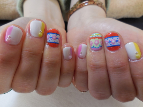 今日はNさん毎日多忙に楽しんでいるNさん今日はお時間作って頂いて有難うございます今日はCちゃん&Uちゃん姉妹と共にご来店~オテンバちゃんが頑張ってお姉ちゃんしておりましたハンドジェル今日はポップにその後のご予定も満喫しましたか~??また次回も3人で仲良く楽しんでもらいましょうね今後もNさんの楽しい日常を覗かせてもらいます今日は久しぶりにゆっくり話が出来て嬉しかったです☆次回も楽しみにしておりますそして、Y姉さん毎月恒例のビューティDAY先日風邪をひいてしまったとか。。健康第一良く食べよく寝ていつも元気なY姉さんでいて下さい!!ハンドジェル今回はシンプルに私たち良い大人ですいやぁ~本当に最近のネット事情は凄い!!良くも悪くも見えてしまうお母さん!!ドンマイ!!!また次回も楽しみにしておりますね~そして、Tさんまつげカールいつも有難うございます☆今日はお仕事終わりで一度家に戻り、お化粧を落としてのご来店まぁ~綺麗なスッピン!!ある化粧品を使い出して、めきめき綺麗になったTさん私も見習わないと。。また良い刺激を頂きますね~次回も楽しみにお待ちしております昨夜。私が一番嫌いとする自分ネイルを仕上げましたいつもシンプルフレンチなのですが、利き手だと、フレンチよりお花の方が楽な事に気づいてしまった春ネイル完成~☆嫌々ながら、仕上がると嬉しいものですルン☆~☆~☆~☆~☆~☆~☆~☆~☆~☆~☆~☆~☆予約等のお問い合わせはメールまたはお電話にて♪ 090-9054-6969 quesera2006@docomo.ne.jp☆~☆~☆~☆~☆~☆~☆~☆~☆~☆~☆~☆~☆☆予約状況☆月・火・水・木・金午前9時半~土・日午前9時~△:一度ご相談下さい。ご予約のご相談をお受けします。皆様のご都合に出来るだけ合わせることが出来るように対応しますので、×印でも一度お問い合わせ下さい♪午前・午後◆3月◆23日(月)○○24日(火)×○25日(水)休業26日(木)×○27日(金)××28日(土)休業29日(日)休業30日(月)○○31日(火)休○◆4月◆1日(水)×△2日(木)×○3日(金)×△4日(土)○△5日(日)××6日(月)休業7日(火)×休8日(水)○○9日(木)○○10日(金)○○11日(土)○×12日(日)○×13日(月)×△14日(火)○○15日(水)×○16日(木)××17日(金)×△18日(土)○×19日(日)×○20日(月)○○