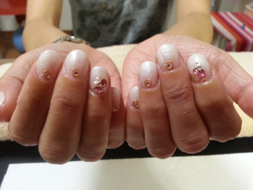 今日はTさん&Sさん月に一度のネイル&ランチ今日もTさんが先にご来店ハンドジェル今回は、ホワイトグラデーションにパールをかけて涼しげにワンポイントは雑誌で一目惚れしたデザインを入れました今日は驚かせてすみませんでしたTさんの気遣いに癒されました有難うございましたそしてお二人でランチ後にSさんお腹いっぱいで眠たいですよね~今回は前回の手描きレースが気に入ったので、ベースカラーを変えてリピートハンドジェル少しレースを変えました雰囲気がまた違って良いですねしばらくリピート?今日は、Tさんとサプライズにしたのですが・・笑われた私も笑えますまた次回もお二人のご来店を楽しみにしておりますそしてYりんちょっぴり夏バテ?お盆休みの間に復活してね~今日は以前から決めてた?ホワイトをチョイスとにかく涼しげをテーマにパールをかけましたハンドジェルうん!!涼しげまた次回も楽しみにしております~今夜はコストコディナー久しぶりに丸ごとチキンを食べて・・ゲポッ。でも美味しかった☆~☆~☆~☆~☆~☆~☆~☆~☆~☆~☆~☆~☆予約等のお問い合わせはメールまたはお電話にて♪ 090-9054-6969 quesera2006@docomo.ne.jp☆~☆~☆~☆~☆~☆~☆~☆~☆~☆~☆~☆~☆☆予約状況☆月・火・水・木・金午前9時半~土・日午前9時~△:一度ご相談下さい。ご予約のご相談をお受けします。皆様のご都合に出来るだけ合わせることが出来るように対応しますので、×印でも一度お問い合わせ下さい♪午前・午後◆8月◆7日(金)休業8日(土)休業9日(日)××10日(月)休×11日(火)××12日(水)×○13日(木)○○14日(金)××15日(土)××16日(日)××17日(月)休△18日(火)○○19日(水)休×20日(木)○○21日(金)○×22日(土)×○23日(日)×○24日(月)×○25日(火)○×26日(水)×○27日(木)○○28日(金)○○29日(土)○△30日(日)○○31日(月)○○