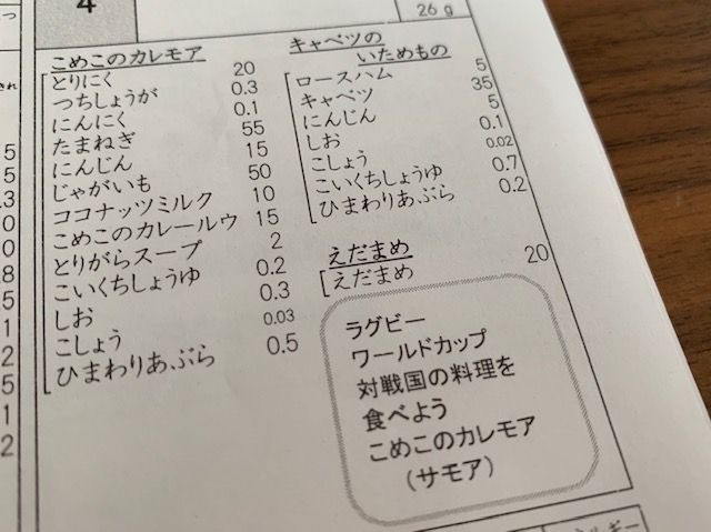 今日はOさんの息子ちゃんおヒゲ脱毛朝、脱毛する事を忘れてて・・しっかりヒゲを剃ってしまったぁ〜〜〜とご連絡がお肌の様子を見ながら、照射させて頂きました照射してしばらく髭剃りを忘れると思いますが気になり始めたらまたご連絡下さい次回、経過を楽しみにお待ちしておりますそして、Fさん・・の予定でしたが。お仕事終わらずまた後日楽しみにお待ちしております今日の娘の学校給食『カレモア』???ラグビーワールドカップの対戦国『サモア』の料理だそうですネット検索結果言えば、カレーでも、いつもよりスパイシーだったそうですよ〜最近の学校給食は色々です凄いな〜今夜の我が家の夕食は『チキンカツ』明日は予定通り運動会!!!カツを食べて勝つ!!ベタ新しい学校で初めての運動会何だか私までドキドキする〜〜〜☆~☆~☆~☆~☆~☆~☆~☆~☆~☆~☆~☆予約等のお問い合わせはLINE@またはお電話にて♪090-2343-5527QueSera' LINE@ ID @prj5693v☆~☆~☆~☆~☆~☆~☆~☆~☆~☆~☆~☆☆予約状況☆月・火・水・木・金・土・日午前9時30分~不定休△:一度ご相談下さい。ご予約のお時間等ご相談をお受けします。皆様のご都合に出来るだけ合わせることが出来るように対応しますので、×印でも一度お問い合わせ下さい♪午前・午後 ◆ 10月 ◆5日(土)休業6日(日)△×7日(月)××8日(火)××9日(水)××10日(木)××11日(金)××12日(土)休△13日(日)×◯14日(月)△×15日(火)××16日(水)×◯17日(木)××18日(金)◯休19日(土)◯◯20日(日)◯◯21日(月)休△22日(火)◯◯23日(水)×△24日(木)×◯25日(金)×◯26日(土)×◯27日(日)◯×28日(月)×◯29日(火)×休30日(水)×◯31日(木)◯◯