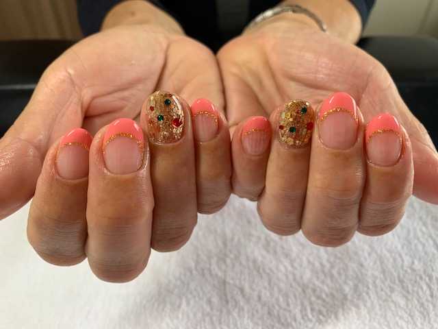 今日はTさん持ちが良いTさんなので、4週過ぎても綺麗そのまま長さだけの問題ですよね〜今日は、今シーズン初のクリスマスネイルをしてくれましたハンドジェルお孫ちゃん喜んでくれるかな〜次回はちょうどクリスマスそれまで存分にネイルを楽しんで、年越しネイルをしましょ〜〜〜次回も楽しみにお待ちしておりますそして、Tさんご主人の送迎でご来店〜いつもお忙しい中、お時間作ってくれて有難う前回のネイルがいつも以上に持ちが良く綺麗に伸び伸びで付いてましたハンドジェルお気に入りのマグネットネイル前回は先端にラメを入れたので、今回は下にまたまたお気に入りになったようで良かった年末になるにつれて、お仕事忙しくなると思いますが・・年内にネイルチェンジして、新年、綺麗なお爪で迎えれたら良いですね〜お仕事の様子見て、ご連絡お待ちしております最近見かける・・『生なごやん』なごやん育ちの私なので、食べきゃ!!!美味しい!!!!!!ちょっぴりパサパサするイメージのなごやん。しっとりとして美味しかったぁ〜またティタイムのお供にしよっ!!☆~☆~☆~☆~☆~☆~☆~☆~☆~☆~☆~☆予約等のお問い合わせはLINE@またはお電話にて♪090-2343-5527QueSera' LINE@ ID @prj5693v☆~☆~☆~☆~☆~☆~☆~☆~☆~☆~☆~☆☆予約状況☆月・火・水・木・金・土・日午前9時30分~不定休△:限られた空き時間ご予約のお時間等ご相談をお受けします。皆様のご都合に出来るだけ合わせることが出来るように対応しますので、×印でも一度お問い合わせ下さい♪午前・午後 ◆ 11月 ◆22日(日)××23日(月)×休24日(火)××25日(水)×◯26日(木)△◯27日(金)×△28日(土)××29日(日)××30日(月)××◆ 12月 ◆1日(火)×◯2日(水)×◯3日(木)◯◯4日(金)◯休5日(土)休業6日(日)×◯7日(月)◯◯8日(火)◯◯9日(水)◯休10日(木)◯◯11日(金)◯◯12日(土)◯◯13日(日)◯◯14日(月)◯◯15日(火)◯◯16日(水)◯◯17日(木)◯×18日(金)×◯19日(土)◯◯20日(日)××21日(月)×◯22日(火)×◯23日(水)×◯24日(木)◯◯25日(金)×◯26日(土)×◯27日(日)××28日(月)×△29日(火)××30日(水)×◯31日(木)休業
