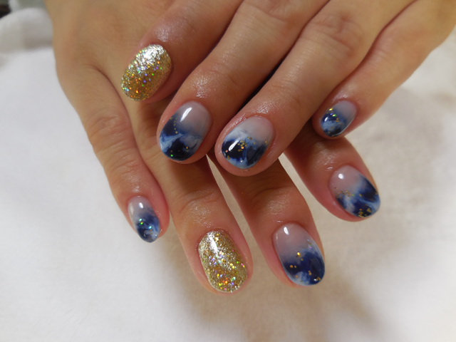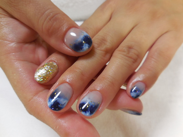 Sさんカラーで涼しげネイルにしました