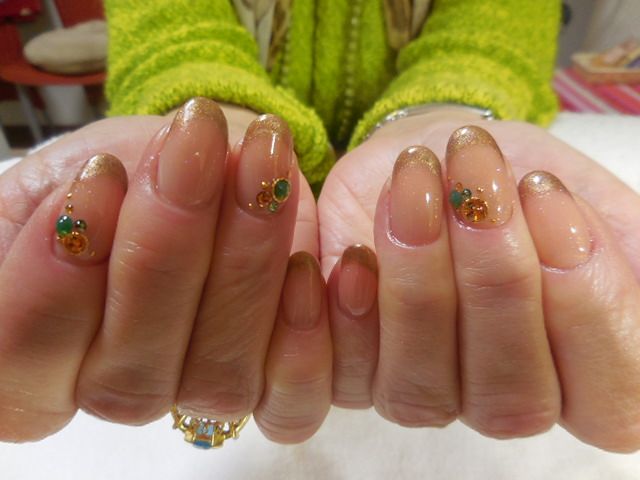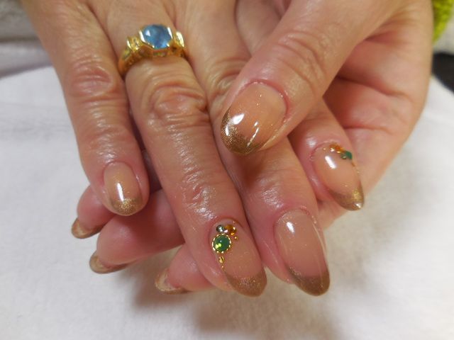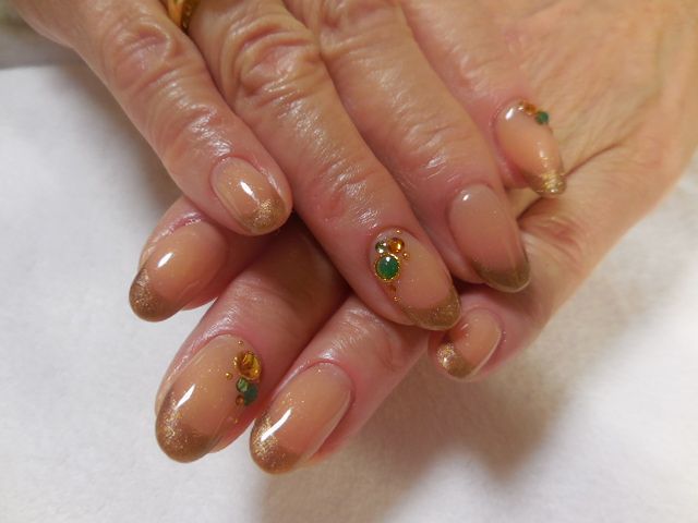 ベースに薄いベージュをひいてのゴールドフレンチ