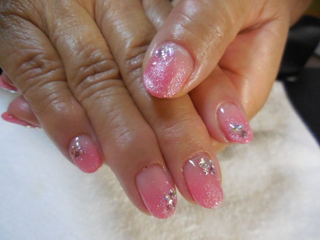 ピンクグラデーションにパールをかけて涼しげに~~~~