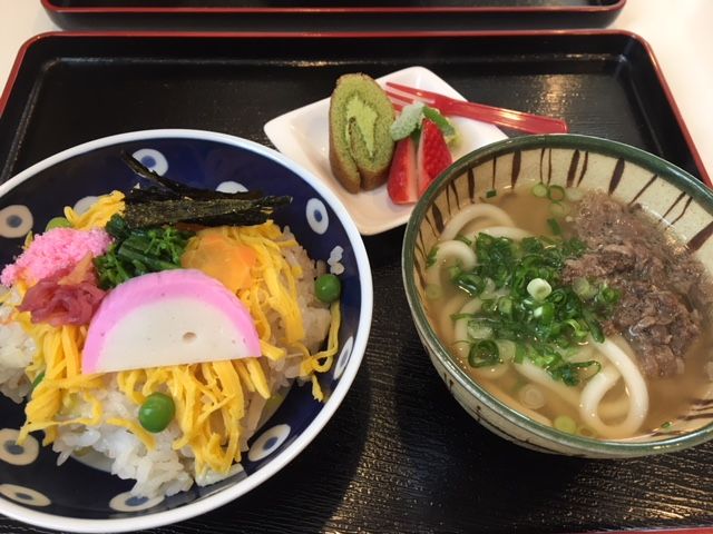 チラシ寿司と肉うどんでした