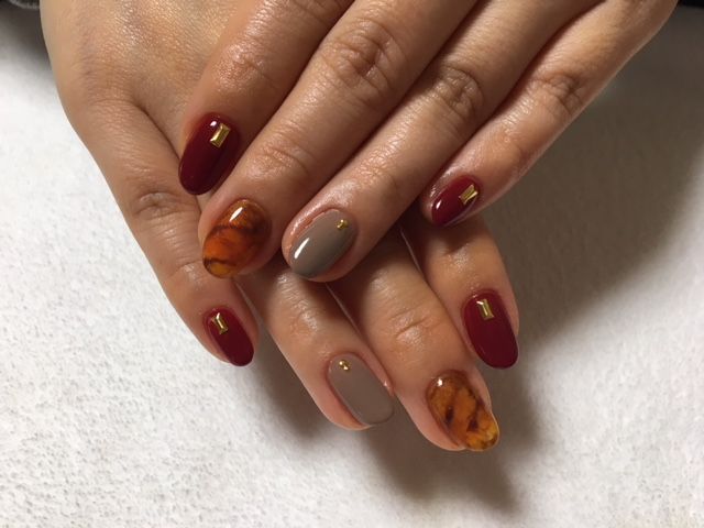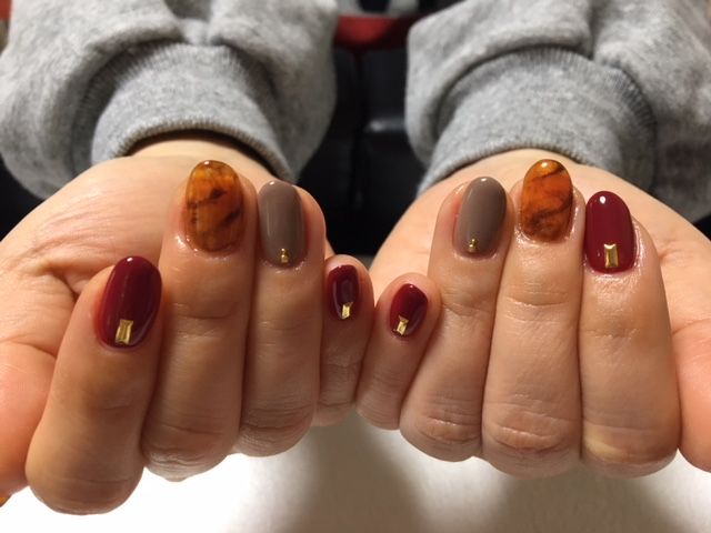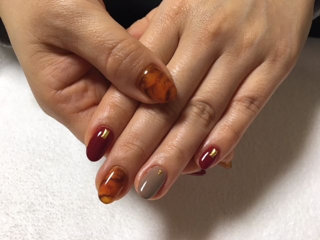 今回はべっ甲ネイルで季節ネイル