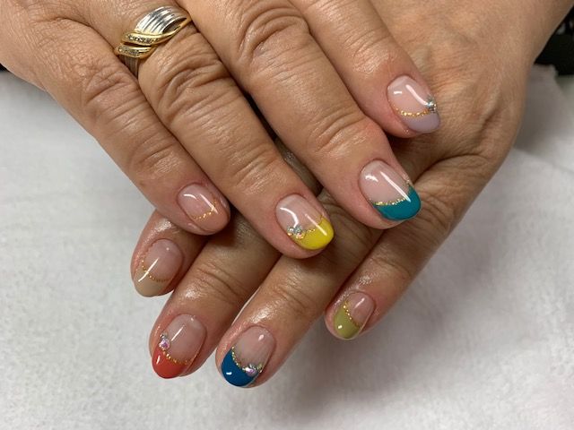 秋カラーのカラフルフレンチで仕上げました
