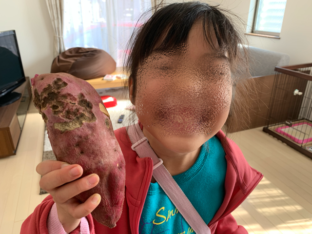 ジャンケンで勝ち取ってきた大きなお芋さん