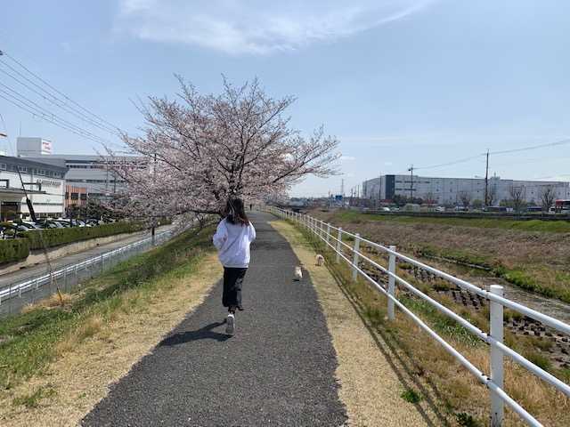 チョコ&チップのお散歩コースは田んぼコースから桜道コースに変わります