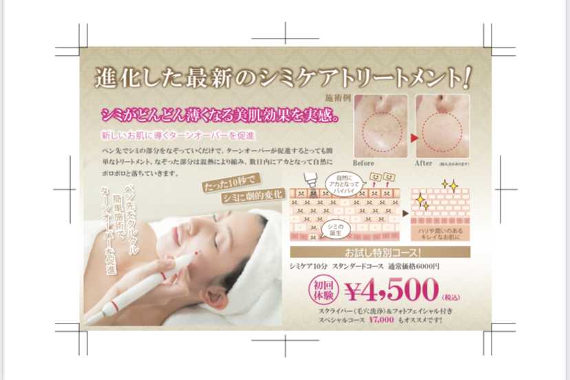 以前からお知らせしている『シミケア』の体験価格&料金表が出来上がりました!!!