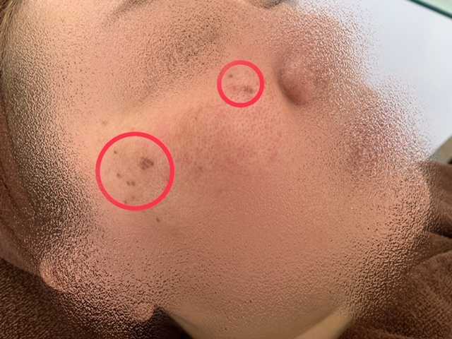 左は、ちょっぴり大きめのシミを中心に