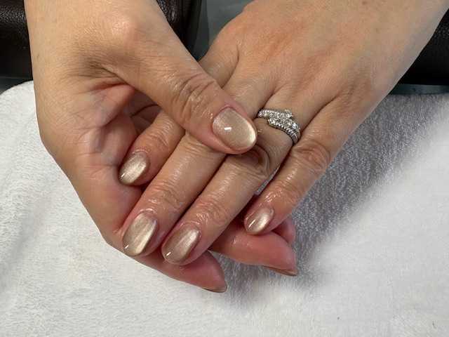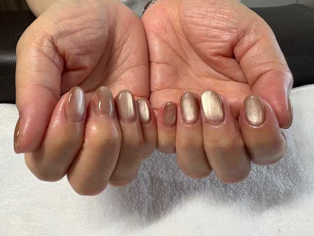 今回はハンドもフットもマグネットネイルでシンプルに仕上げました