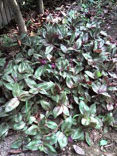 その葉の様子をカタログ的に表現すると「光沢のある白緑色地に、中央と周辺に暗緑紫色の斑が入り、裏は暗紫色で、美しい葉色」。