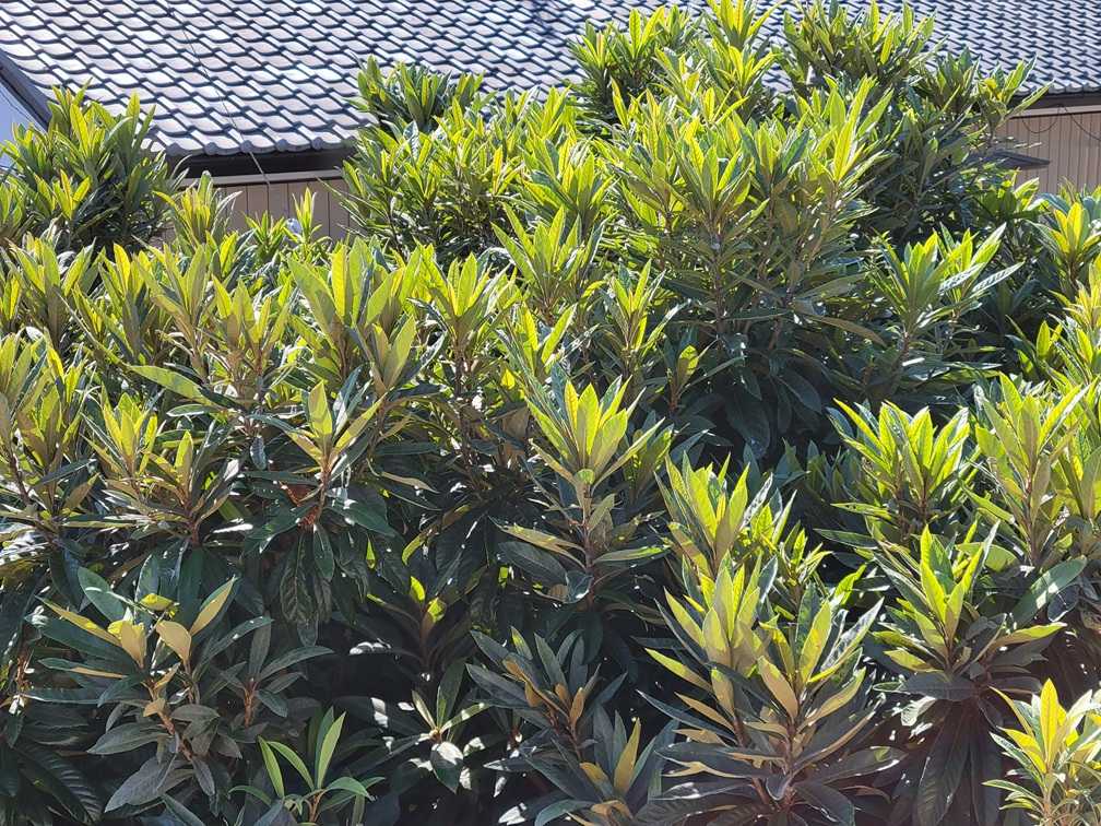 毎年9月に枇杷の木を刈り込むのだが、今年は入院のおかげでそれが出来ていない。そこで、枇杷の木は伸び放題。夏の間に成長した新しい枝葉が表面を覆っている。刈り込むためには樹間に昇って太枝を切り落とすのだが、バストバンド着用の体では無理な体勢がとれない。そこで、バストバンドを外せる11月末までは今の状態が続くことになる。枇杷の木が元気なのはありがたいのだが…。