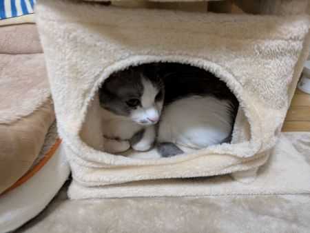 ばんちゃ~~んあったかひざかけ買って来たよ~~ゲージに敷いてあげるね~~ なのになのになぜ手前のタオルの上にすわる