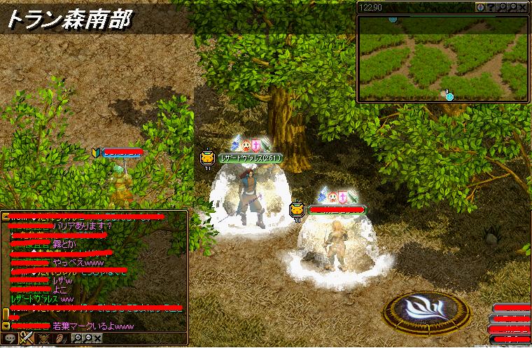 今日は、この前Gメンと約束してたトラン東で狩りをしました・・・がトラン東へ行く途中にトラン西か南にいかないといけないんですね。で、トラン南から行く事にして、トラン南に着いたらなにやらGメンが←をみろとの指示・・・・なんだろ・・・と、見てみると・・・・見てみると・・・ん・・・ん?????え!!まじですか!!!もう一度よく見てみましょう。・・・・まだ見づらいですか??気合入ってます。根性です。若葉さんです。いあー。まさかとは思いますが、狩りにきたんでしょうか?もし、若葉さん(20レベル以下)でトラン南ソロできたら、神ですはい。そして、ドロップは運が18しかないので、完全オツドロップでした。水はおろか、DX品すら出ない始末でした。やっぱ、水品狩りしようと思ったら、基本は運必須ですねー。ではでは。