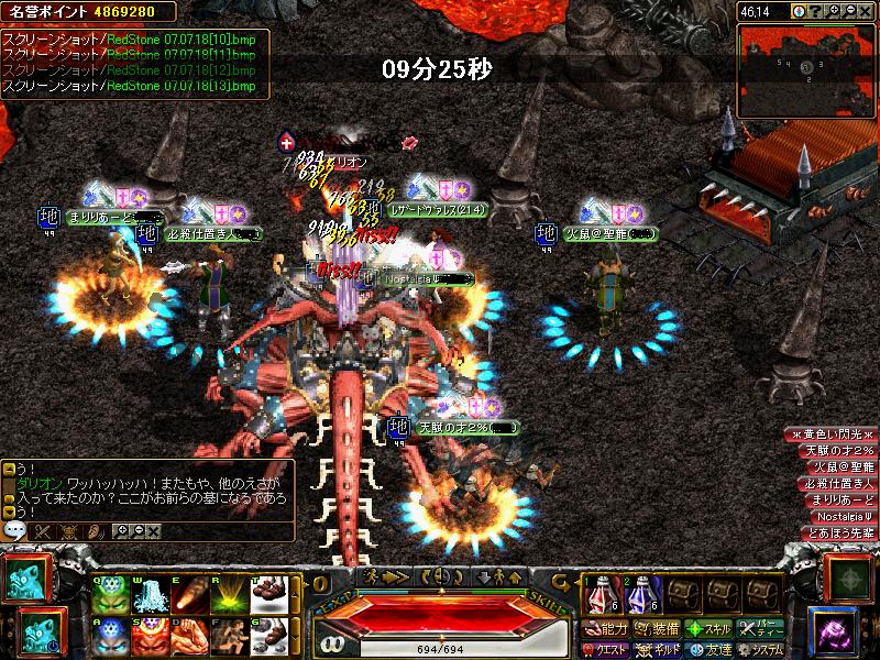 いあいあ、みなさんお久しぶりです。ほんとに久しぶりにブログの更新ですbほぼ、引退状態だったのですが、仕事も昨今の派遣切りの波に飲まれリストラされました><そして、暇になったので最近って言っても、2ヶ月ちょっと前にRSの世界に復帰しました。んで、休止中にいろいろアップデートされたみたいで、いろんな情報を聞くと・・・・・前まで暗黒のレベル帯だった、330~340レベルの秘密がなかったのですが・・・・320~???の秘密が実装されたそうです!!ってことで、先日320レベルに達したので、スウェブ9Fに行ってまいりました!! ↑がスウェブ9Fの秘密のラストです^^。ボスがねーとにかく硬い;;周りの取り巻きも硬い;;取り巻き全員やっつけると、ボスが何気に範囲魔法メテオスウォーム!!!(チガ アースクェイクを使ってくるんですね;;これがまた痛いのなんのってすべての抵抗が90で(BISさんのアーチのおかげ^^)でかつ、ブレ(一定時間最大HP大幅UP)がかかってる状態でも3/5ぐらいくらっちゃうの;;で、その後は、BISさんはPTH(パーティーヒール)、私は必死にアスヒアスヒしてました^^しかも一発じゃなくて数回くらうもんだから、常にHPはブレを含めた状態での最大値を維持しておかないと危険危険ww今はこんなところですかなーPS:経験値2倍キャンペーンのおかげで今、Wizが332レベルにまであがりました。ワーイvv