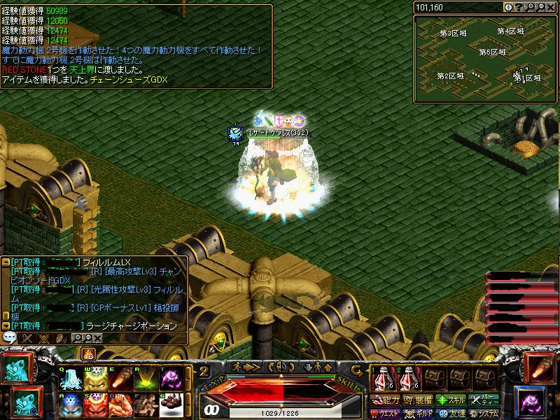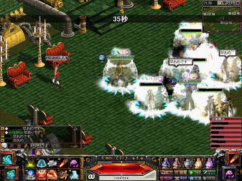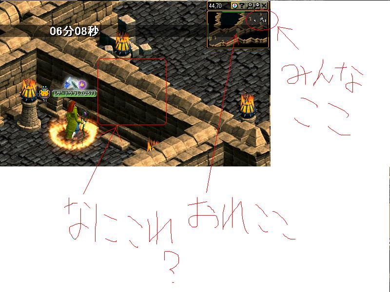GV終わったあとにみんな時間があまったらしく、ポイント戦行って来たんですね・・・・そしたらさー、急に鯖が重くなって、ゼンゼン移動ができなくなったんだよねー。鯖からのレスポンスが遅いだけかなーと思ってたんだけど、鯖落ちして、戻ってきたら壁に阻まれてさー一人ぼっちになったんだよねーなんだよ、この仕様。さすがダメオンだなー。まぁその後、ここのフロアー攻略した後に壁開きましたけどね・・・・じゃあ、この辺でノシ