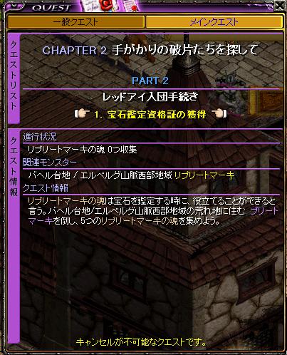 スウェブタワー20Fから脱出し、帰還の石を使い一旦スマグへ移動。その後走ってハノブへ行き、テレポーターで古都へ到着した。そして鑑定士ティレンに会い話しを聞いた・・・・どうやらバヘル台地周辺にいるリプリートマーキとやらのMOBを狩りまくって、クエ品5個ゲッツしないといけないらしい・・・・クエ品ドロップ率いいのか謎だがとりあえずやってみることに・・・・(クエの種類によって、ドロップ率いいのと悪いのがあるからなぁー・・・OTL)
