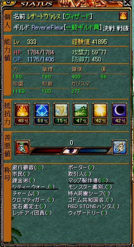 えっと、赤石の緑鯖で活動中です。キャラは3キャラいます初めて作成した181弓(ラディシア)と、2番目に作成した214Wiz(レザードヴァレス)と3番目に作成した50歳リトル(マーモ公妃小ニース)です。主に、Wizをメインで活動中かな。一応エンチャ、ヘイスト、メテオシャワーWizかなー能力はこんな感じ。ウーム・・・・完璧に紙Wizですなー・・・・・・でもでもー一応、ソロッサスは2分45秒くらい(レベルにしてはオソイww)まぁチリヘイじゃないのでチリの火力には自分自身期待してません・・・ぁwwwwwwww背と、足と頭は購入費用忘れたので割愛・・・・・ぁww杖はアリアンで5M、ブローチもアリアンで10M、勲章もアリアンで17M、腰もアリアンで3.8M手は古都で12.5M、体はアリアンで6Mですね~。合計すると、これだけで・・・・・・54.3Mですね~。装備品の出費痛すぎです><。とまぁこの辺で・・・・。PS:現在、CP効率60%↑の背を捜しています~。売ってくれる方ブログで返信か、耳お願いします~(予算・・・えっとそんなにお金出せないかも。一応30M前後でwww)