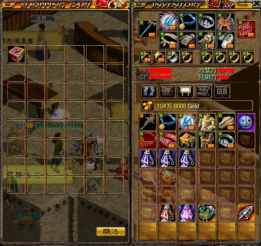 トラン北で良品とDX品を求めて狩り開始~なぜか、水狩り+ギルハンになってましたww(みんな僕の弓キャラが所属しているGメンさんです)まーーーたく何も出ませんでしたwwそうゴミUさえも。そして日付が変わり、PTのとある人が河口ラの秘密へ行こうと切り出した為、一同河口ラの秘密へ行くことに~。秘密ダンジョンへいくポタすぐ出るといいなー。PS:上記のお金4倍は自分だけみたいだったので、PTの一人がガンガンMOB狩って~との依頼・・・無茶言うな~。ww