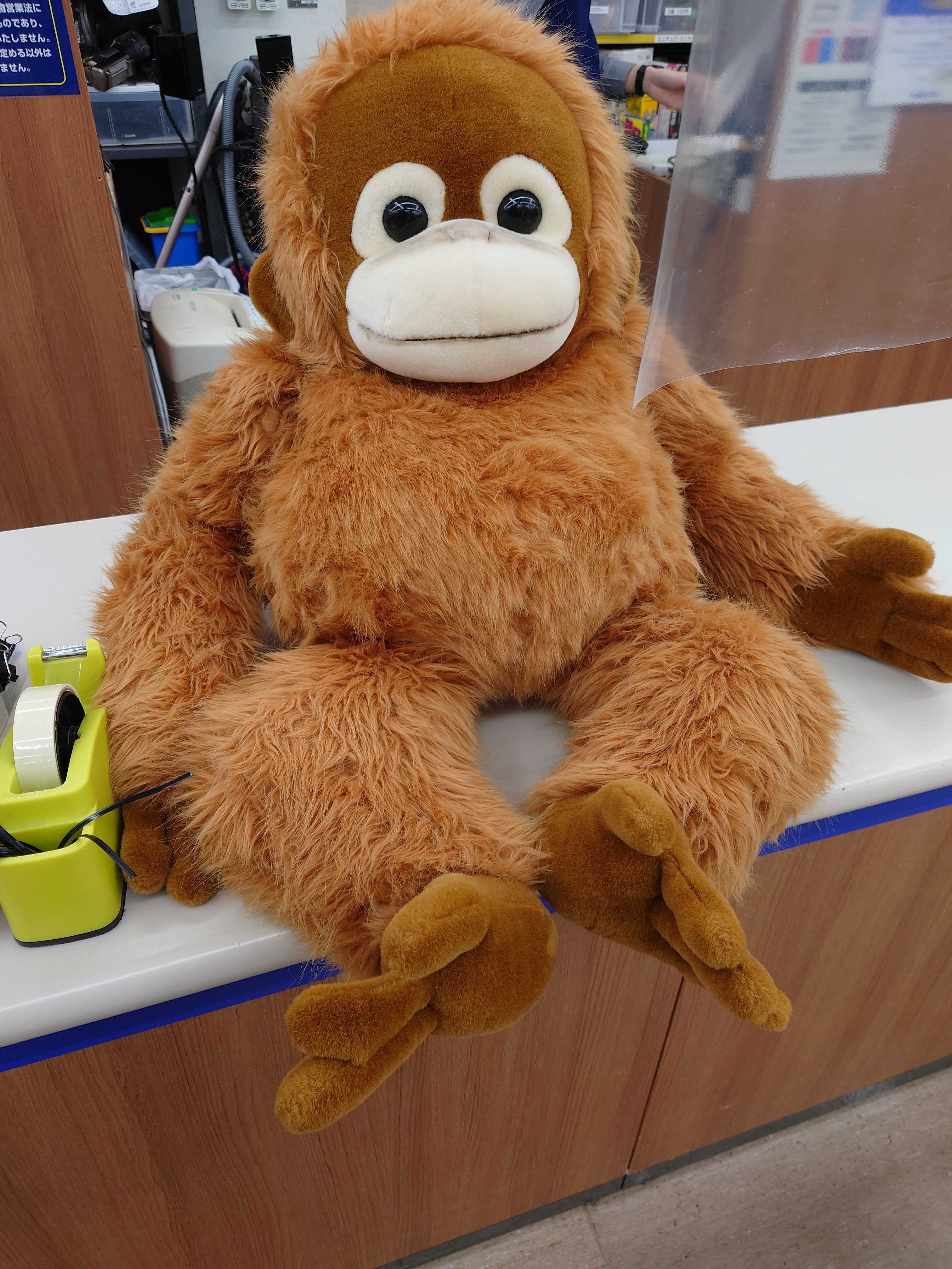 一昨日ハードオフ西宮を訪れたときに、こんなものが買取カウンターの上に置いてありました。こっ、これはナカジマコーポレーション の 動物の赤ちゃん王国のオランウータンのぬいぐるみではありませんか!「これください!」と言いましたが、まだ買取成立していないし、今日はおもちゃの担当がいません、と言われ、ひと晩辛抱して今日の朝一にハードオフ西宮に電話し、引き取ってきました。お代は、「程度が悪いので、ジャンク品で110円。」とのことでした。こっ、これのどこが程度が悪いのか、、、毛並み良好です。有難く110円支払いました。このシリーズを集めている我が家。早速名前をつけ、「マーガレット」にしました。ようこそマーガレット!