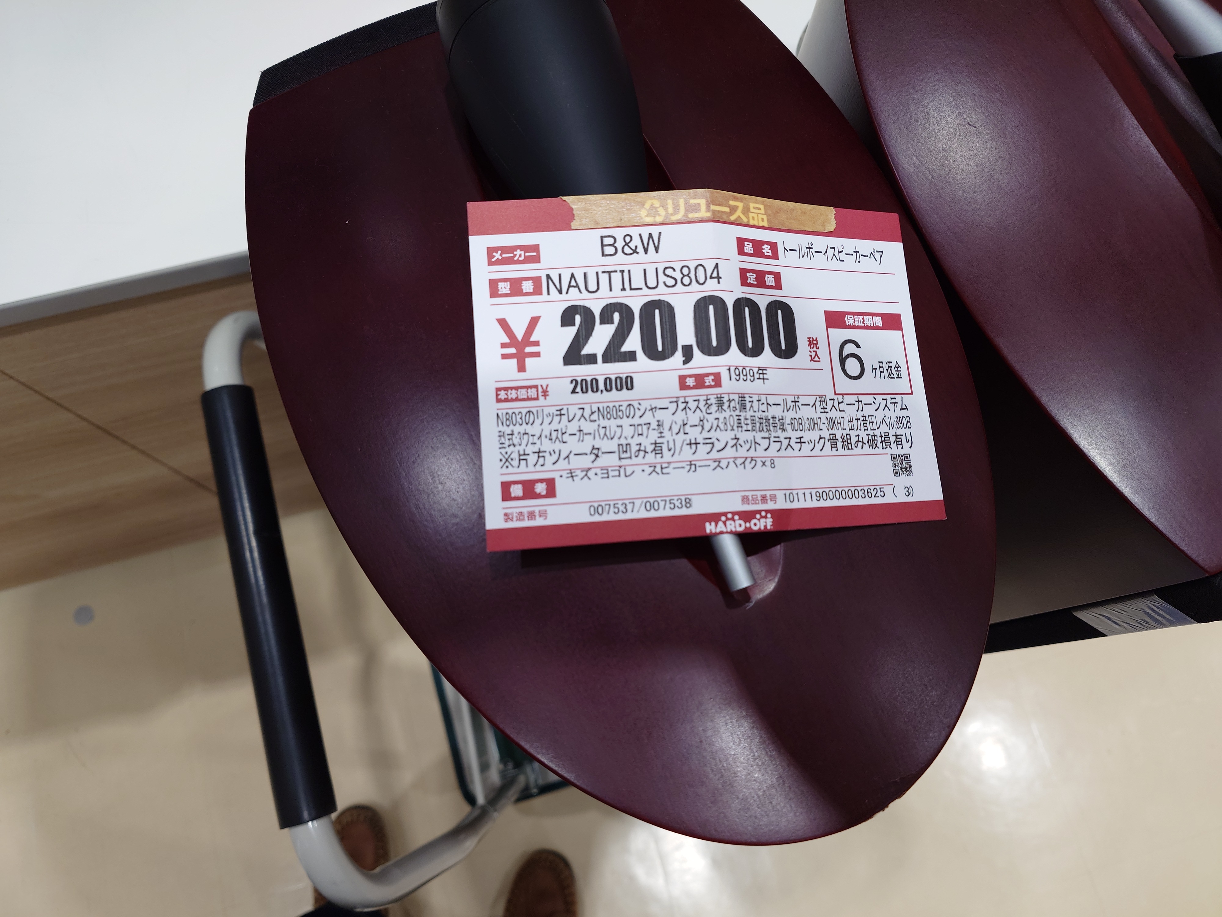 ハードオフ某店にて価格交渉し、店長「いつも良く買取りに来てくれているので。」税込18万円ポッキリにしてもらいました。B&W Nautilus 804ツィーターが片方へこんでいますので、デノンマランツサービスに連絡して出張修理手配致しました。実はNautilusシリーズは昔からの垂涎の憧れでした。805だけは20年前くらいに一度入手しましたが、トールボーイタイプは初めてです。重量から考えて、上位機種は現在の我が家では設置は無理なのでこの804が精一杯でしょう。さて、どんな音を奏でてくれるでしょうか。