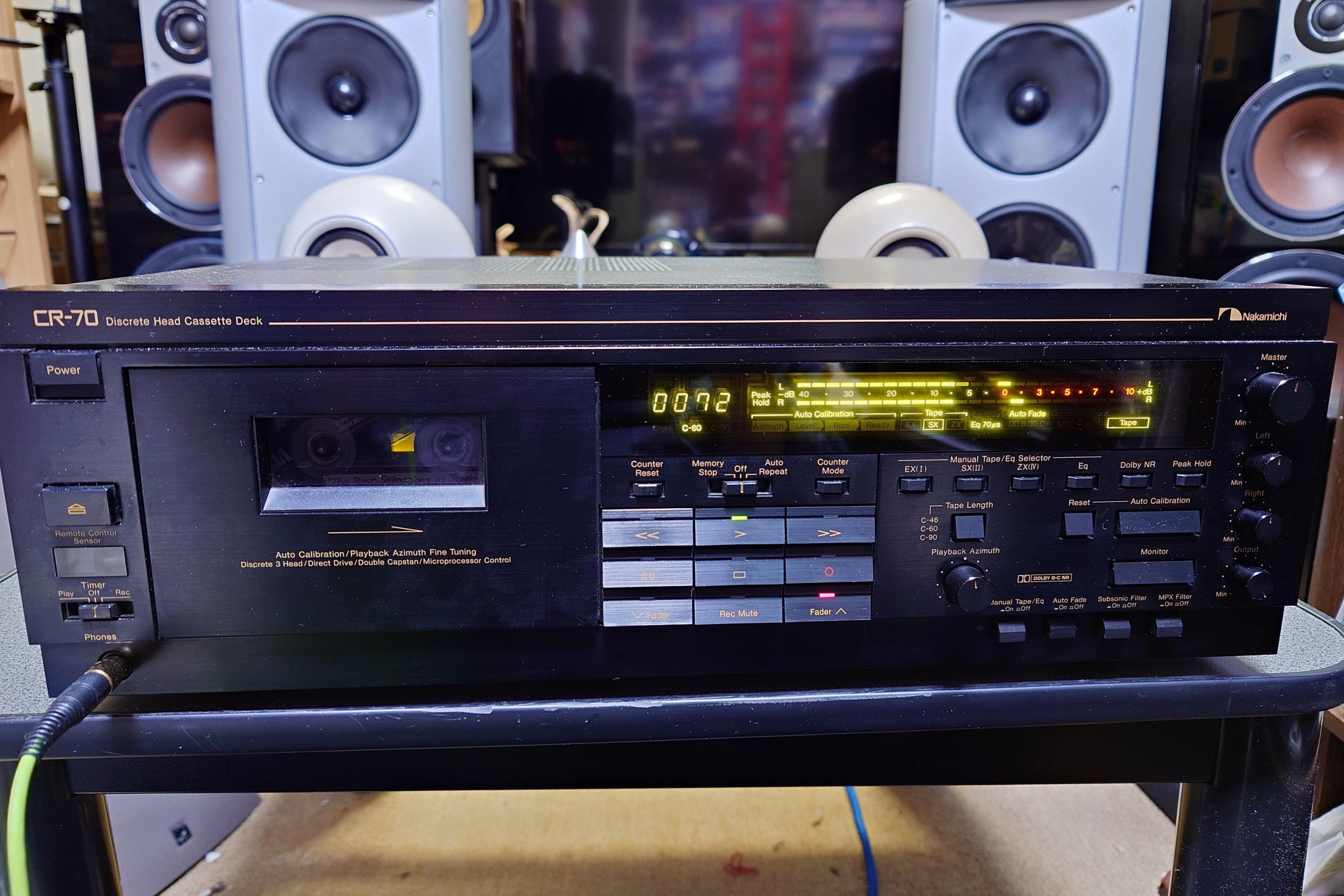 某所で144,000円で買ったNakamichi CR-70が届きました。テストをしてみると、再生は問題ありませんでしたが、オートキャリブレーションがエラーを起こしています。修理歴を見ると、2005年に一度やっているみたいですが、さすがに20年も経てばどこかおかしいところが出てくるでしょう。そこで販売店と交渉した結果、修理代分として三万円返金を受けることとなりました。さあGWが終わったらエムエーサービスに修理に出します。
