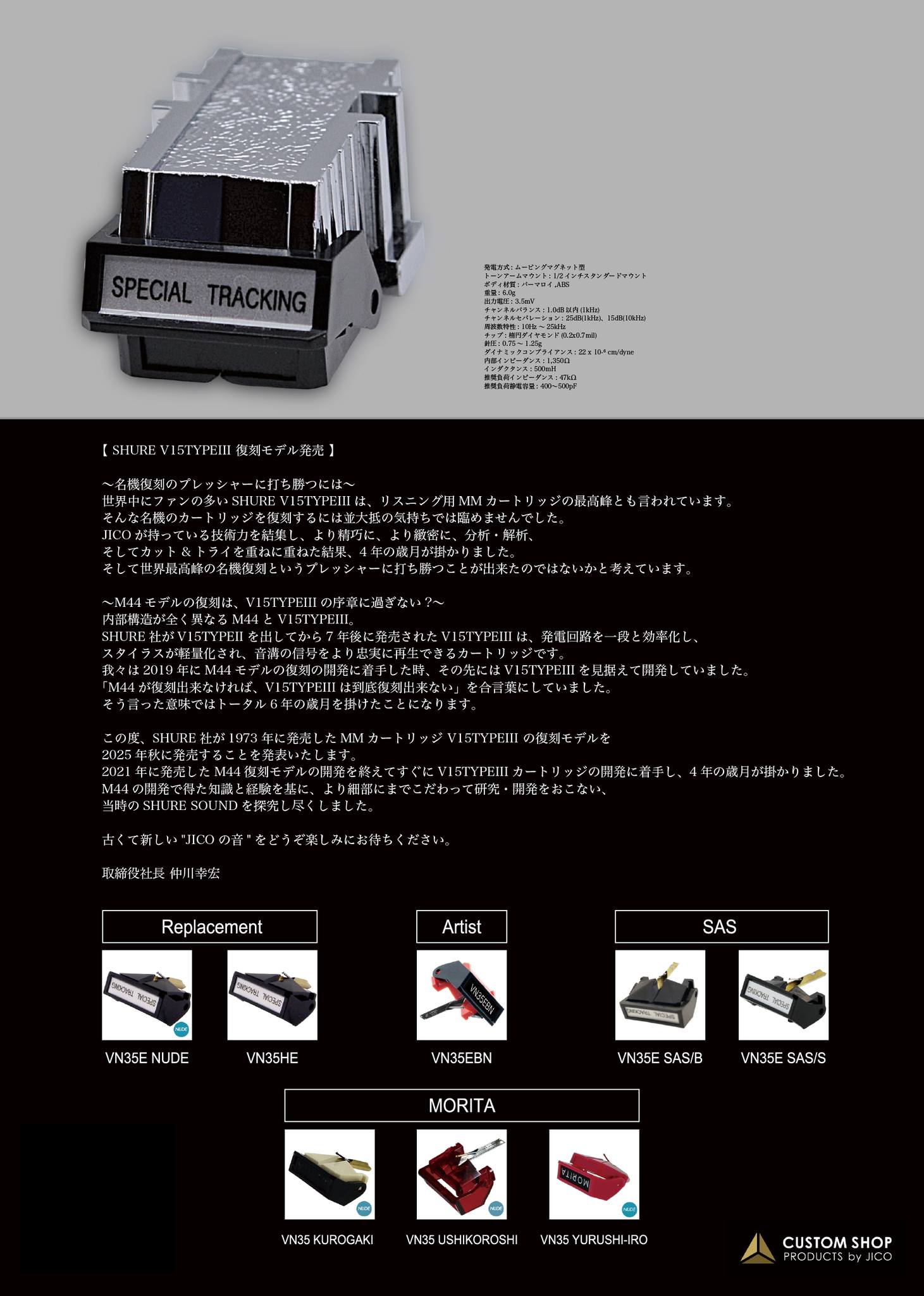 SHUREの名器、V15TYPEⅢがJICOにて今秋復刻発売されます。お値段がわかりませんが、必ず買うと思います。今後の楽しみが出来ました。