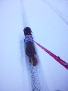 とっても寒いのにライちゃんったらお散歩したいと。除雪されてない車の轍を元気よく歩いてました♪