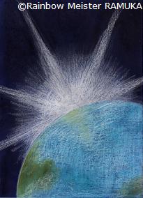 以前、コーヒーかなにかのコマーシャルで谷川俊太郎さんの「朝のリレー」という詩が朗読されていました。経度から経度へ朝をリレーして、地球を守るという内容の詩だったのですが宇宙からの夜明け(の写真)を見ると、朝のリレーを思い出すのです。