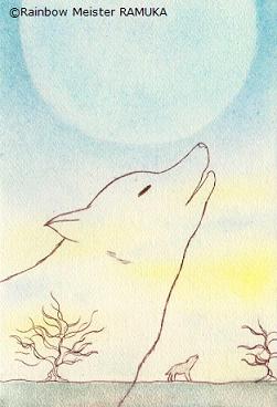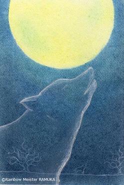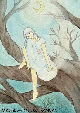 グループ展ぎりぎりになってどうしてもオオカミが描きたくなって描いた絵。しかしオオカミと満月なんてベタ。この絵を塗っているとき、ミスチルを聴いていたんだけど「蒼」という曲が、不思議なほど自分に入ってくるし(それまでにも聴いていたのに、この時になって初めて)この絵にも曲が染み入っていく感じがしたので曲名をタイトルにいただきました。でも、ほとんど歌詞を思い出せない絵に歌が入っていくというのも、お気に入りの曲なのに歌詞を思い出せないというのもはじめてでおもしろい体験。