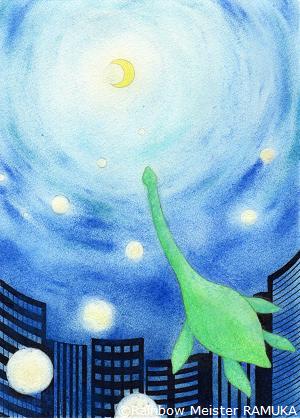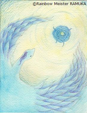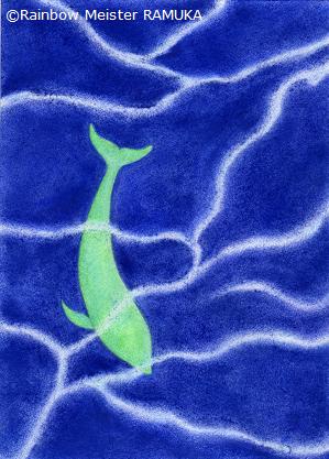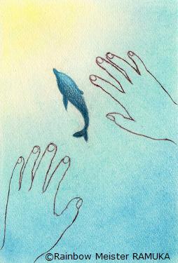 なんかさ、オオカミを描こうと思ったら、どうしてもイルカになっちゃったんだよ。哺乳類ってぐらいしか共通点ないのにさ。(アポロンの使いってのもあるけど、関係ないし!)「いいよ!そんなにイルカが描いて欲しいならイルカも描くよ!!」って描いたのがこの絵。なんか、イルカを捕獲しようとしている手に見えるよねぇ。