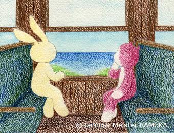 電車の中から海が見えるとテンション上がるよね!(私だけ?)ついついこんな絵を描きたくなっちゃう。テンション上がりすぎて、二人ともしっぽを描き忘れちゃったな。4月まで働いていた職場は、海っぺり。なのにテンション上がるどころか、海を見ようという気も起こらなかったな。冬になると富士山がきれいに見えていたので、毎日に富士山チェックは欠かさなかったけどね。