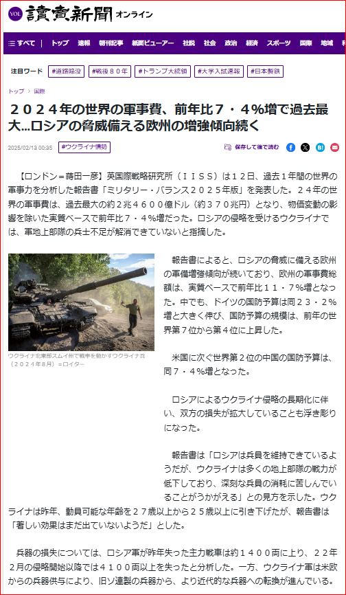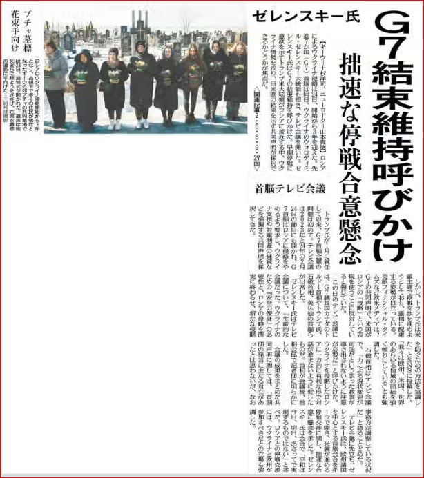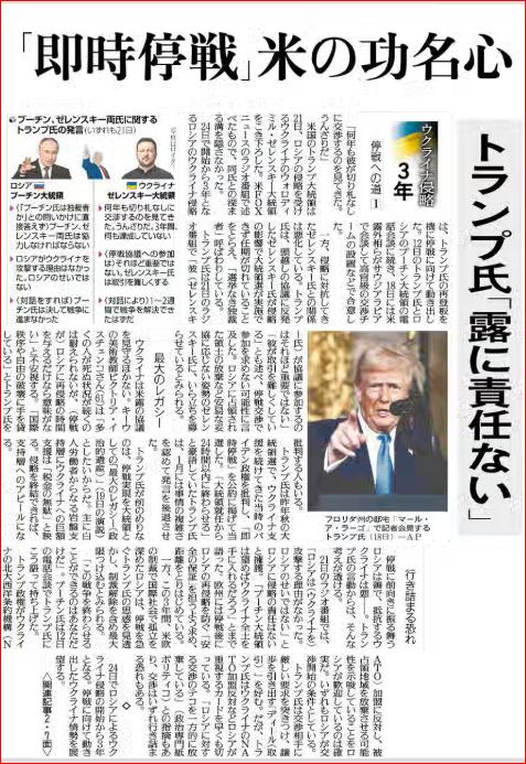 ★ロシアのウクライナ侵攻を ウクライナ側から見ると ~明らかに、米国はトランプ氏および 側近の現状把握意欲が劣っている?★画面の拡大は「CTRL」+「+」を数回押す画面を元に戻すのは「CTRL」+「0」を1回押す★読売新聞朝刊2025・2.25★