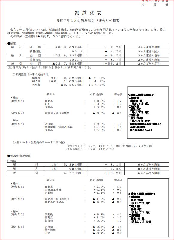 ★通関統計2025年1月分文字の拡大「CTRL」+「+」→「CTRlと「プラス+」を数回おす文字の元への戻し方「CTRL」+「0」→「CTRL」と「ゼロ」文字の縮小「CTRL」+「ー」→「CTRL」と「マイナス」画像は必要なだけの範囲に拡大・縮小しておくこと