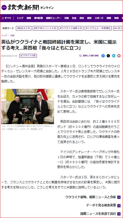 ★2025年3月3日の雛祭りの日~英・ウクライナなどの自由世界は米国の離反でより強固に★