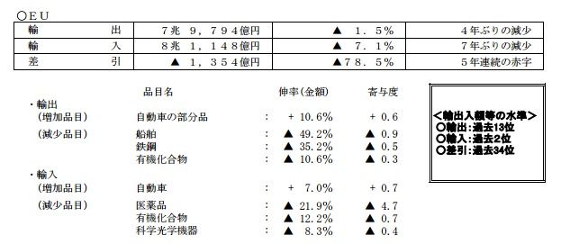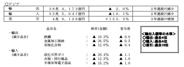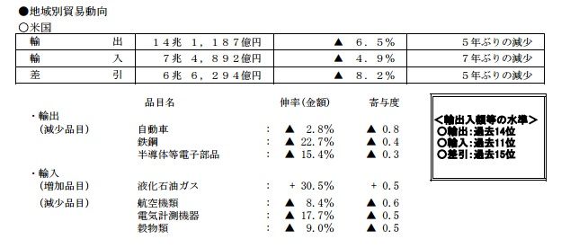 前年から ▲3.5%減少しているなかで、「 米国 」が▲6.5%と大きく減少している。