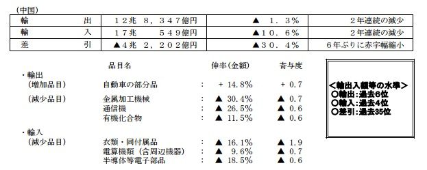 品目別には財務省が主要品目を提示しているので下記に転記する。