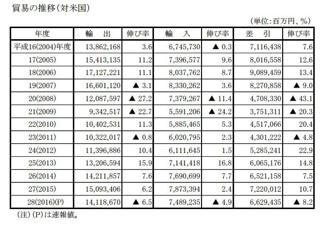 ・「 対米貿易 」では、リーマンショックや東日本大震災にあっても